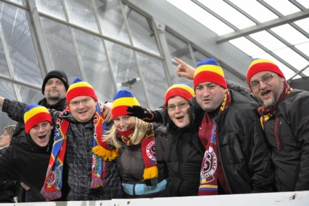 Sektor se nenápadně odkamarádil s „kumpány od židličky“ a odebral se za námi i se svým úlovkem. Rázem jsme tedy měli o posez navíc a euforie mohla propuknout naplno. Zpívali se chorály, fandilo se, hulily se vítězné doutníky… těžko popisovat vše, co se zde událo, Sektor vzpomínal na staré výjezdy, které mu toto připomínalo a fandil s nadšením jako malý kluk. Bomba. Majk vyvolával Pepu Chovance, Jardu Hřebíka a další oblíbence všech Sparťanů, Márty kontroloval airbagy a my s Gabčou jen koukaly a smály se, jelikož jsme byly asi jediné střízlivé a ta počáteční euforie nás lehce míjela ;)